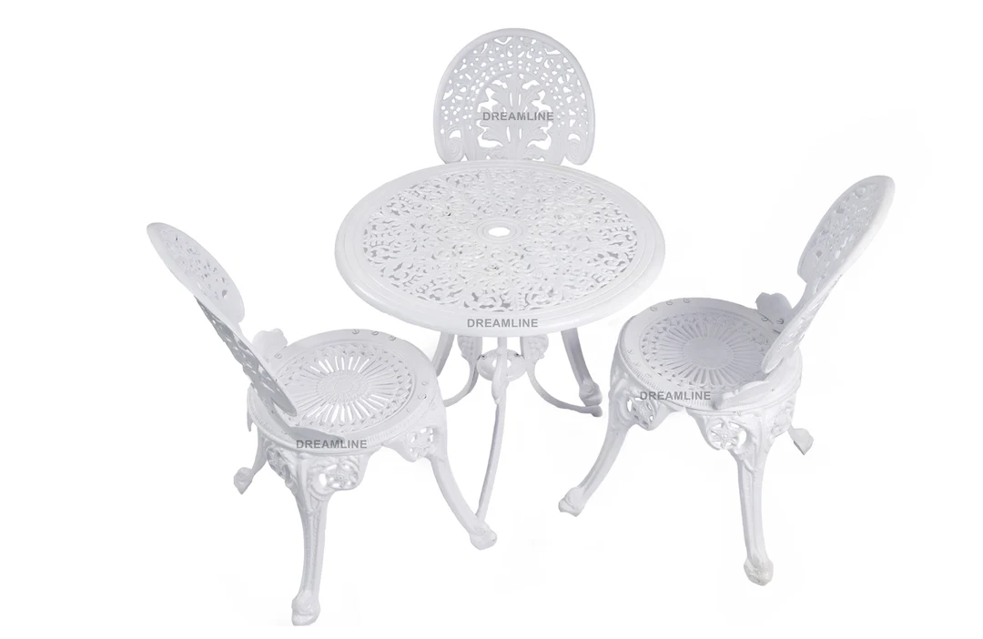 - CAST ALUMINUM: This outdoor patio bistro set is made of high-quality cast aluminum. Waterproof and sun resistant, rust proofing and durable, easy to clean, elegant tulip pattern antique finish adorn the chair. The surface of the and chair is smooth without burr.